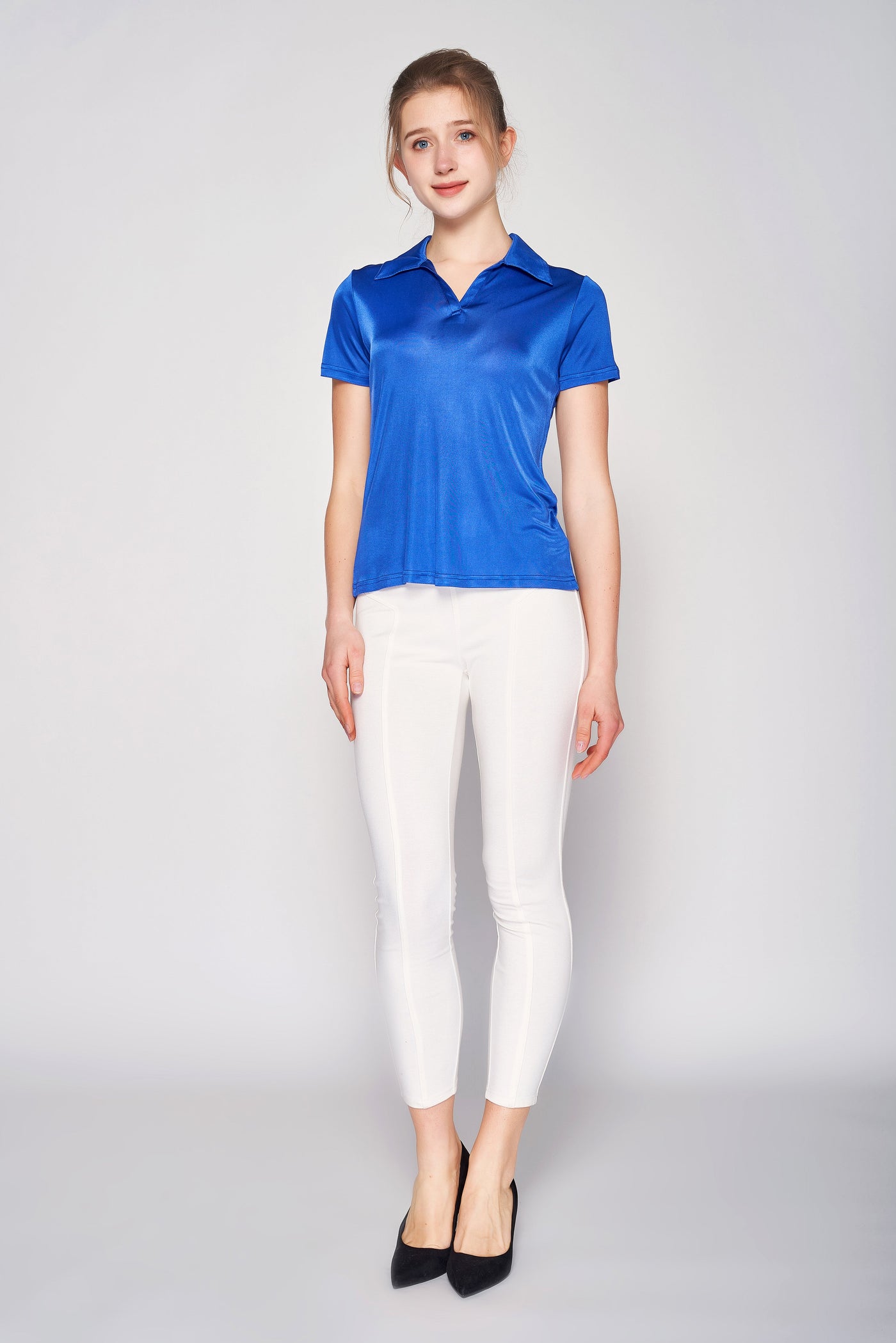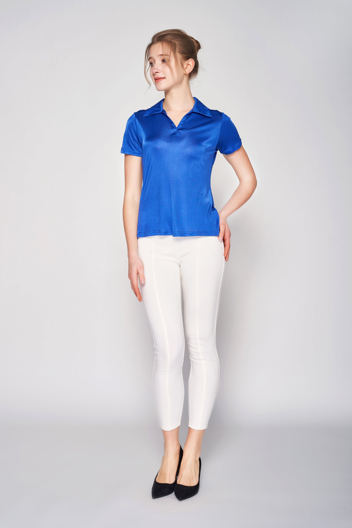 MULBERRY SILK POLO T SHIRT FOR WOMEN - ROYAL BLUE